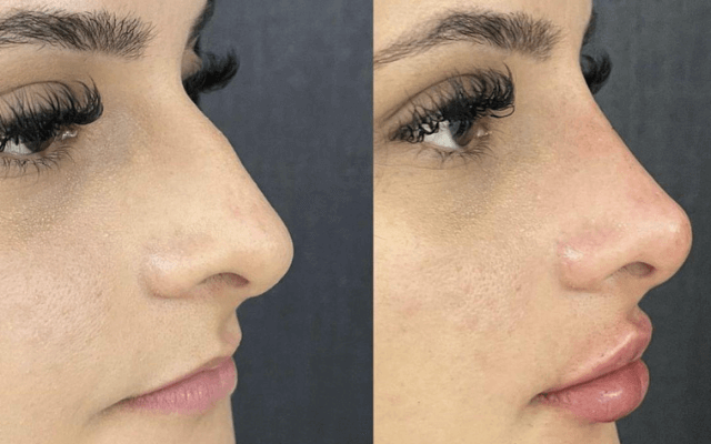 Suavização do perfil e alinhamento do dorso com contornos sutis.